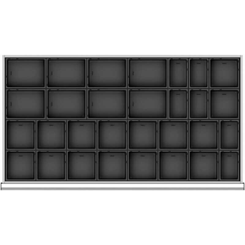 Vaschette per minuteria in plastica. I set riempiono completamente un cassetto 46×24G. Per: Cassetti 46×24G. Contenuto: Vaschette per minuteria easyPick n. art. 951251: 8× Dim. 6×8/1;