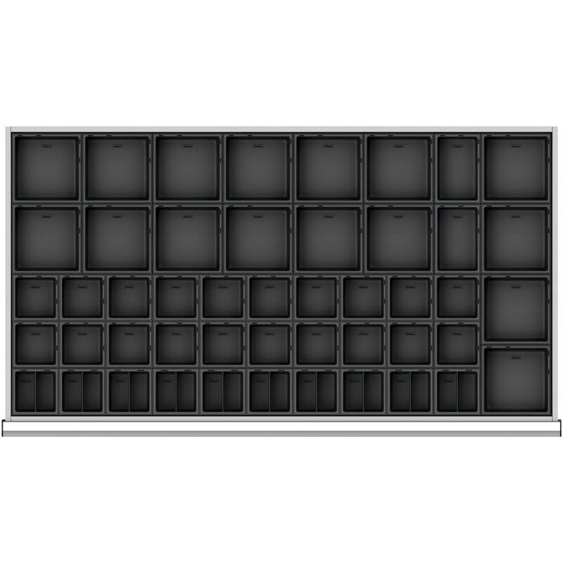 Vaschette per minuteria in plastica. I set riempiono completamente un cassetto 46×24G. Per: Cassetti 46×24G. Contenuto: Vaschette per minuteria easyPick n. art. 951251: 10× Dim. 4×4/2;
