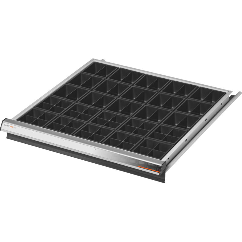 Divisori per 4 cassetti del banco da lavoro 5S. Composto da vaschette per minuteria GridLine easyPick e divisori fessurati bilaterali con listelli fessurati laterali e separatori lisci a incastro. Per: Banco da lavoro GARANT GridLine 5S n. art. 922864 e n. art. 922874. Fornitura: 25 vaschette per minuteria GridLine easyPick, 6 divisori fessurati bilaterali GridLine, 3 set da 2 listelli fessurati laterali GridLine, 12 separatori lisci a incastro GridLine. Dati tecnici Cassetti Larghezza utile × Profondità utile in G 20×20G Tipo di prodotto Divisori per cassetti Superficie utile dei cassetti in G 20×20 Per cassetti larghezza utile, mm 500 Per cassetti profondità utile, mm 500 Divisorio 1 G = 25 mm