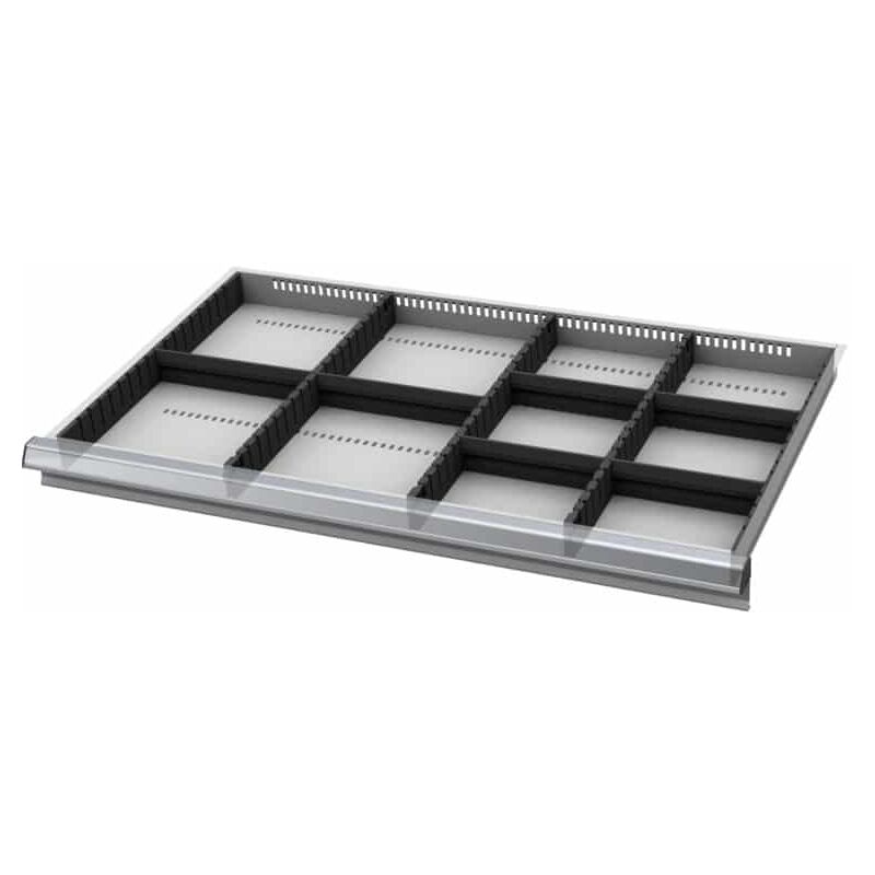Listelli fessurati laterali, divisori fessurati e separatori ad incastro in plastica. I divisori fessurati vengono fissati con clip nelle fessure del cassetto. I separatori lisci ad incastro vengono inseriti nei divisori fessurati. I divisori riempiono completamente un cassetto 36×20G. Per: Cassetti 36×20G. Contenuto: Set di listelli fessurati laterali n. art. 951570: 1× Dim. 125 Pannelli fessurati n. art. 951520: 3× Dim. 125 Parete divisoria a incastro 8G n. art. 951781: 4× Dim. 125 Parete divisoria a incastro 10G n. art. 951801: 2× Dim. 125 Dati tecnici Attributo del nome del prodotto 36×20G Tipo di prodotto Parete divisoria per cassetti Per altezza frontalini dei cassetti, mm 125 Superficie utile dei cassetti in G 36×20 Per cassetti con larghezza utile in G 36 Per cassetti con profondità utile in G 20 Altezza, mm 100 Peso, kg 1,591 Per cassetti larghezza utile, mm 900 Per cassetti profondità utile, mm 500