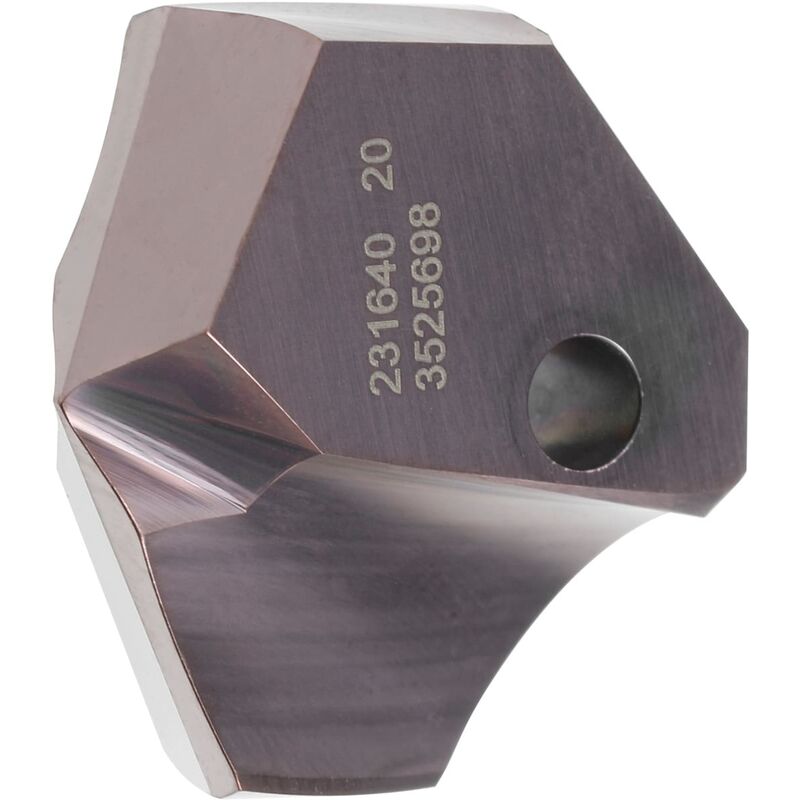 Inserto rettificato a prisma per posizionamento preciso e sede stabile. Precisione di concentricità radiale di montaggio ≤ 20 µm. Per fori di precisione fino a IT9. Nota: I dati di taglio valgono per l'elemento base 5×D. Impostare i fori pilota esclusivamente con l'inserto per taglio dello stesso tipo. Dati tecnici Acciaio < 500 N/mm² m/min idoneo Acciaio < 1100 N/mm² m/min idoneo TOOLOX 33 m/min idoneo HARDOX 500 < 1600 N/mm² m/min limitatamente adatta GG(G) m/min limitatamente adatta TOOLOX 44 m/min idoneo a umido max. idoneo Acciaio < 1400 N/mm² m/min idoneo Acciaio < 900 N/mm² m/min idoneo Acciaio < 750 N/mm² m/min idoneo Materiale da taglio HM Tipo HB7530 Numero taglienti Z 2 Angolo di affilatura Grad 135 Tipo di prodotto Inserto da taglio per foratura Semi-standard sì Serie HiPer-Drill Avanzamento f in acciaio < 900 N/mm2, mm/U 0,28 Numero di sostituzioni/taglienti 1 per dimensioni dell'elemento base, mm 17 ⌀ D, mm 17,9