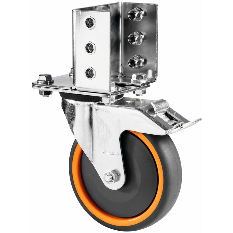Ruote con ⌀ 125 mm. Ideali anche per terreno non pianeggiante. Il parafilo previene l'inceppamento della rotella. Silenziosità ottimale grazie ai cuscinetti a sfera di alta qualità. Con superficie di scorrimento in poliuretano che non lascia tracce, resistenza al rotolamento minima e rumore di transito ridotto. Portata per ruota 200 kg. Portata massima nell'uso con 4 ruote: 600 kg. Fornitura: 2 ruote piroettanti e 2 ruote piroettanti con freno e corona rotante. Incluso materiale di fissaggio. Verniciatura: Zincata, non configurabile. Dati tecnici Tipo di prodotto Raggio Altezza di ingombro, mm 150 ⌀ Ruota, mm 125 Altezza, mm 150 Portata per pezzo, kg 200