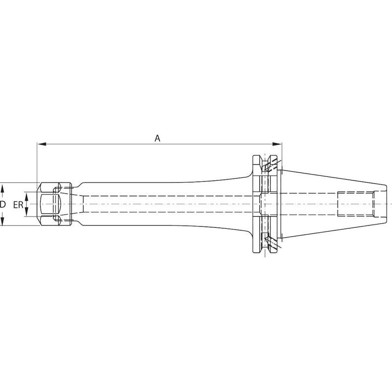 308835, chiave di serraggio ER n. art. 309680 o 613300, pinze ER n. art. 308901 − 309449, ghiera di serraggio ER n. art. 309615 (per anelli di tenuta), anelli di tenuta n. art. 309625 − 309645 (per n. art. 309615).Dati tecnici per pinze di serraggio ER 40 Adattatore SK 50 A = 200 Norma attacco ISO 7388-1 Forma ADB Qualità equilibratura G con numero di giri G 2,5 con 25000 min-1 Precisione della concentricità