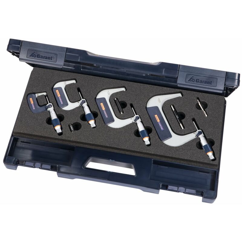 DescrizioneEsecuzione:Micrometri n. art. 420402.Dati tecnici Norma DIN 863 Intervallo di misurazione 0 mm - 150 mm Scala tamburo graduato 1/50 mm Metrologia analogico Numero di micrometri 6 Numero di aste di regolazione 5 Imballaggio Custodia rigida Taratura S2 Tipo di prodotto Micrometro Codice articolo 420404 0-150 EAN / GTIN 4045197604255