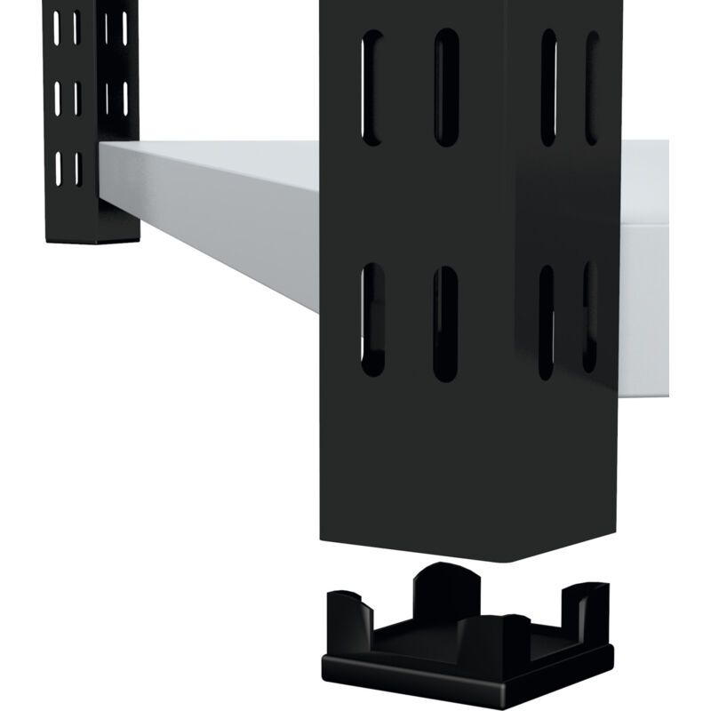 Solidi montanti quadrati, fessurazione con passo 40: 40 mm per adattare l'altezza dei ripiani agli elementi da immagazzinare. 40×40×2 mm, con piedini in plastica. Uso: Per l'ampliamento degli scaffali universali n. art. 990000 − 990025. Verniciatura: Nero RAL 9005 termoverniciati. Dati tecnici Tipo di prodotto Montante Altezza, mm 3.004 Colore nero RAL 9005 termoverniciati Profilo profondità, mm 40 Larghezza profilo, mm 40 Spessore profilo, mm 2 Adattamento ripiano su 4 lati Possibilità d'uso come colonna d'angolo sì