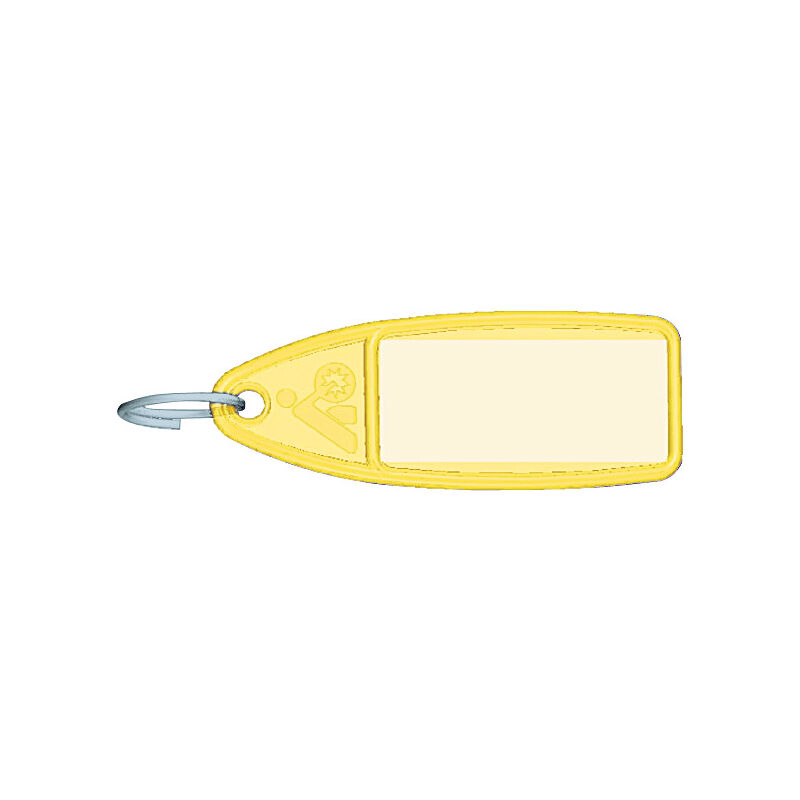 Design gradevole con anello per chiavi e cartoncino per l'etichettatura. La copertura del cartoncino viene aperta o chiusa mediante incernieratura. Dati tecnici Tipo di prodotto Portachiavi Colore giallo Contenuto del set 10 pezzi Apertura copertura mediante incernieratura sì