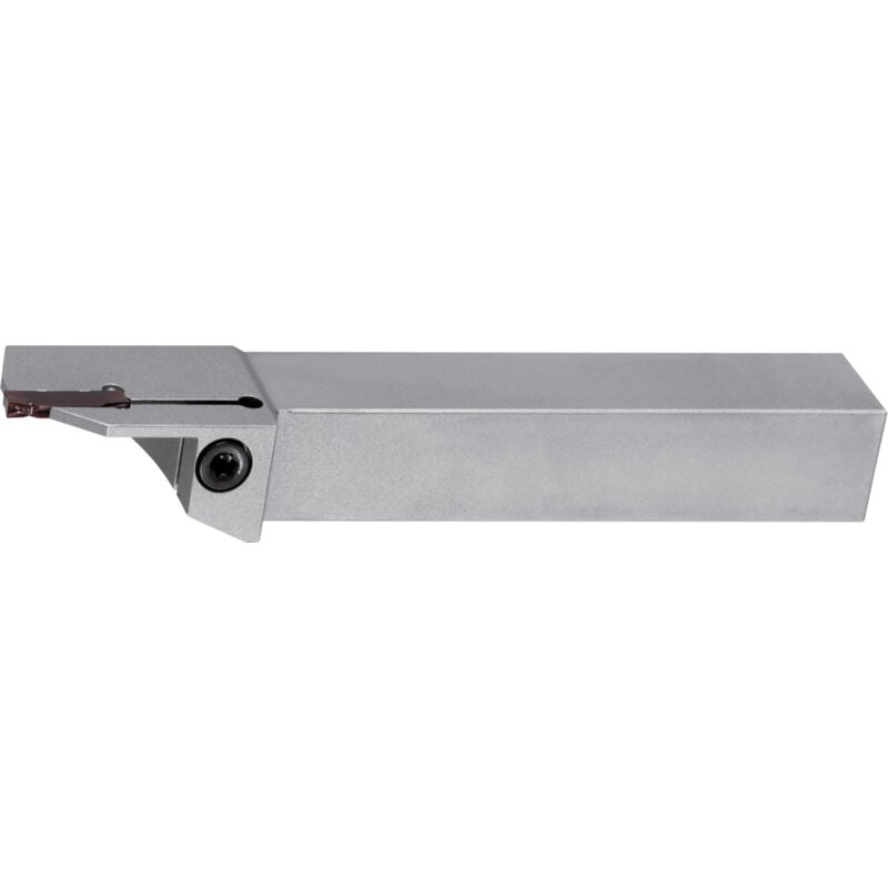 DescrizioneEsecuzione:In acciaio per utensili ad alta resistenza (>1300 N/mm2). In combinazione con il serraggio inserti convesso si ottiene la massima resistenza contro forze di taglio assiali e radiali, aumentando di conseguenza notevolmente la qualità delle superfici e la produttività.10×w Nota:⌀ massimo = ⌀ pezzo limitato a causa dell'esecuzione.A partire da una profondità gola di 19,5 mm (fino a larghezza gola di 3 mm) o da una profondità gola di 24,5 mm (da larghezza gola di 4 mm), il tagliente posteriore viene a contatto con il pezzo. In questo caso si possono verificare rigature di lavorazione.Se necessario, usare inserti di troncatura a un tagliente n. art. 273656 - 273670.Dati tecnici Larghezza gola w 3 mm Tipo di impiego sinistro Passaggio interno per LR no ⌀ massimo 60 mm Profondità cave tmax 30 mm Ampiezza funzionale L4 26,5 mm Lunghezza della testina L1 46 mm Larghezza codolo 25 mm Lunghezza complessiva L 150 mm Vite 279815 6 (TX25;