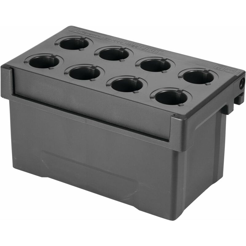 Portautensili in polipropilene resistente all'usura, con boccole per il codolo dell'utensile. Il portautensili può essere utilizzato come unità singola per il trasporto e la custodia, ma si adatta anche perfettamente come componente flessibile in carrelli, armadi per macchine CN, scaffali per macchine a CN e guide portanti UNIT. Uso: Per l'inserimento in guida portante, guida profilata per carrelli, armadi per macchine a CN e guida Multifix. Dati tecnici Tipo di prodotto Sistema di supporto per macchine a CN Larghezza, mm 240 Altezza, mm 130 Materiale Polipropilene Numero boccole portautensili 8 Profondità, mm 148 Interasse A, mm 55 Per codoli utensili VDI 30 Portata, kg 20
