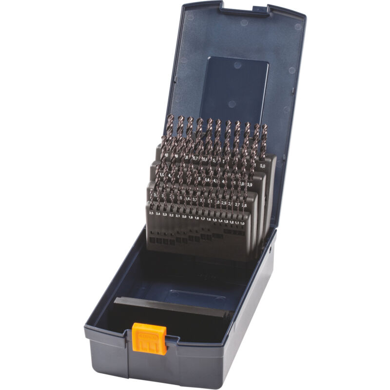 DescrizioneEsecuzione:Composto da punte elicoidali a norma DIN 338.Punta ad alte prestazioni per una resa eccellente. Fori precisi grazie all'affilatura a croce ottimizzata e a un'affilatura a 4 spoglie. Lo speciale profilo di scanalatura consente di ridurre sensibilmente le forze di taglio.Dati tecnici Area di foratura 1 mm - 6 mm Rivestimento TiAlN Materiale da taglio HSS E Norma DIN 338 Tolleranza ⌀ nominale h8 Angolo di affilatura 118 ° Angolo dell'elica 35 ° Codolo Codolo cilindrico Numero taglienti Z 2 Passaggio interno per LR no Numero di punte 51 Punte a misure crescenti di 0,1 mm in cassetta si Colore collarino verde Tipo di prodotto Punta elicoidale Codice articolo 115450 1-6 EAN / GTIN 4045197875532