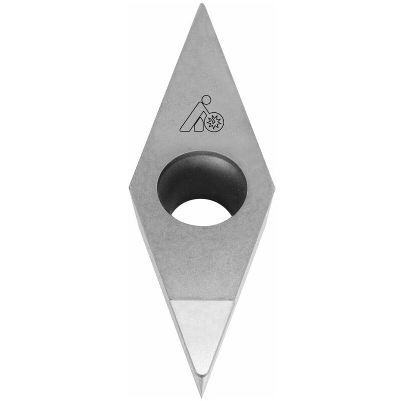 PCD − diamante policristallino, grana fine. Neutro, senza rompitruciolo. Uso: Per alluminio, leghe di alluminio, metalli non ferrosi, materie plastiche, materiali compositi, leghe di titanio e metalli sinterizzati. Dati tecnici Attributo del nome del prodotto PCD Angolo di spoglia superiore Grad 0 Profilo degli inserti neutro Tipo di prodotto Inserto per tornitura USP1 VCGW 110304 FN USP2 PKD (7°) Materiale da taglio PCD Avanzamento f, mm/U 0,03 - 0,4 Codice ISO Inserto VCGW 110304 FN Tipo PCD Numero di sostituzioni/taglienti 1 Condizione di taglio continuo Esecuzione del tagliente N Profondità di taglio ap, mm 0,1 - 2,5 Velocità di taglio vc per Al < 10% Si, m/min 300 - 2.000 Velocità di taglio vc per metalli non ferrosi, m/min 300 - 1.500 Velocità di taglio vc per G(C)FRP, m/min 150 - 600 Raggio di curvatura, mm 0,4 Assegnazione finitura/sgrossatura Sgrossatura-Finitura