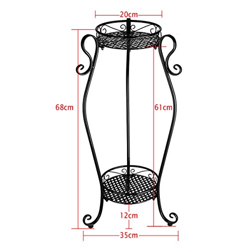 Garbagemall - Supporto a 2 piani, in metallo, per piante in vaso da interni, le mensole contengono 2 vasi per fiori, colore: nero