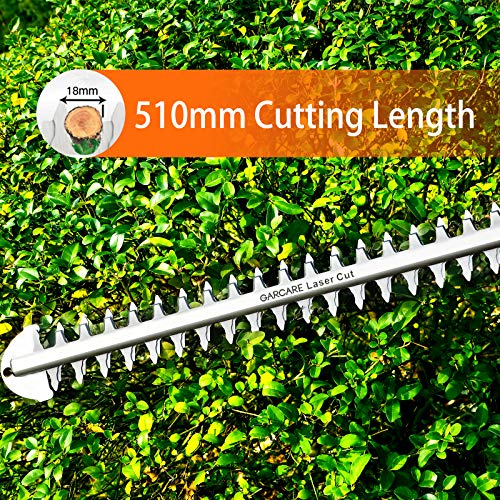 GARCARE Tagliasiepi Elettrico a batteria 20V 4.OAh- Tagliasiepe Professionali(Caricabatteria,Lunghezza Taglio 510 mm, Distanza Denti 18 mm)