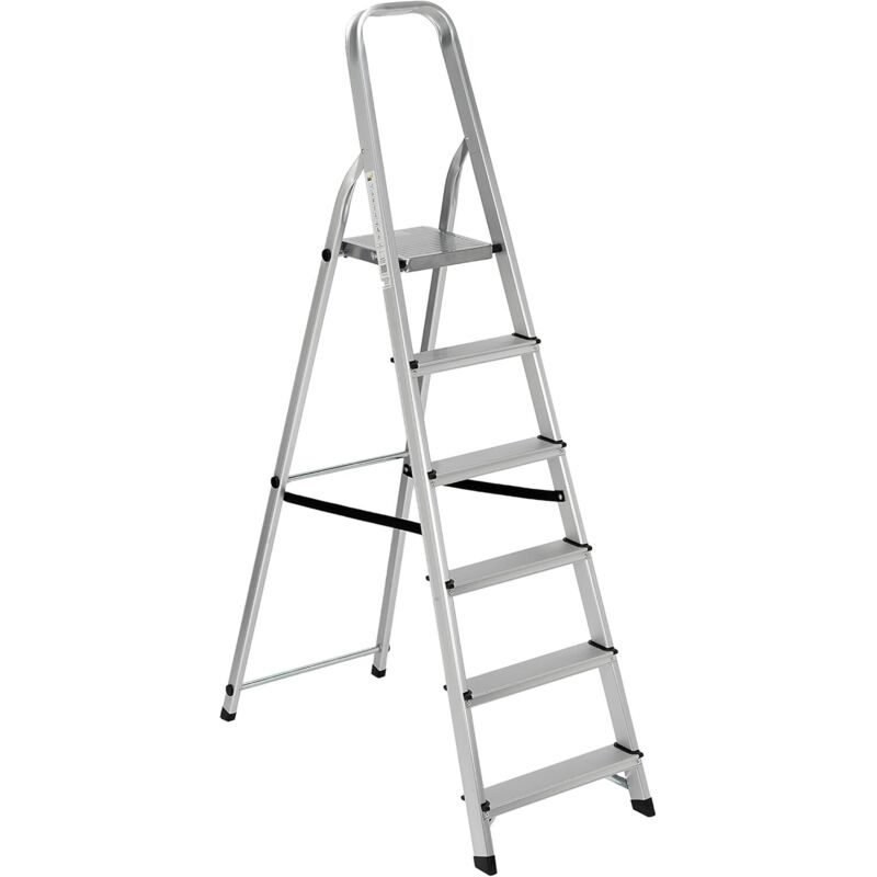 Scala in alluminio per lavori di fai da te e bricolage. Caratteristiche del prodotto: Scala in allumino 6 gradini Per uso domestico Portata massima 150 Kg Prodotto conforme alla normativa europea UNI EN 131 Dimensioni base 47 x profondit 105 x altezza 172 centimetri