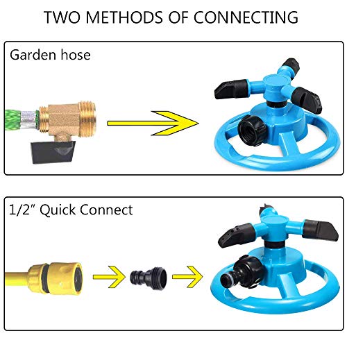 Facile da usare e veloce installazione: basta collegare misto al connettore e acqua di rubinetto, tighting fino la filettatura interna per renderlo di tenuta e sicuro. Controllare la quantità di pressione e distanza di il prato irrigatore va regolando la pressione dell' acqua. Quando si accende il rubinetto, Garden sprinkler comincerà a spruzzo