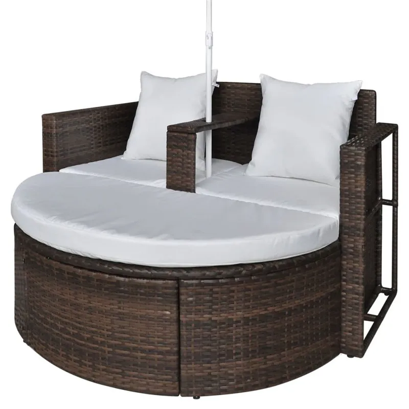 Garden Bed with Parasol Brown Poly Rattan Outdoor Beds