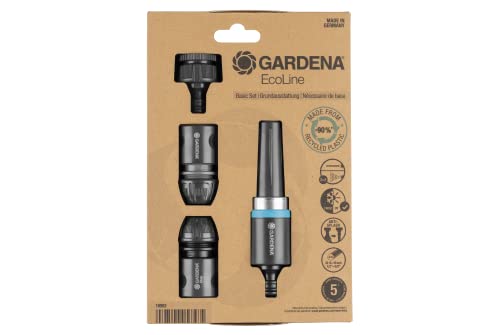 Gardena Ecoline Dotazione di Base: Set Composto da Lancia di Pulizia, Presa Rubinetto, Adattatore, Raccordo per Tubo E Acqua-Stop, per Irrigazione E Pulizia, Resistente a Raggi UV E Gelo (18900-20)