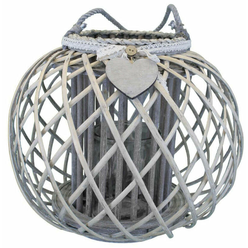GARDENESS: Scegli solo prodotti di qualità per il tuo giardino! Lanterna in vimini Le nostra lanterne in vimini renderanno accogliente sia la tua casa che il tuo giardino, è così versatile da poterci inserire una candela, una lampadina o anche solo dei fiori. Puoi appoggiarla a terra o appenderla, per ottenere una la perfetta atmosfera o impreziosire le vostre festività. Specifiche Tecniche: lanterna grigia in vimini e vetro con nastro in pizzo e decoro a cuore Dimensioni: cm top tondo 20 x 32 h-centrale tondo 40 x 32 h-vetro tondo 12,5 x 15 h Colore: Grigio Materiale Principale: Vimini, Vetro...