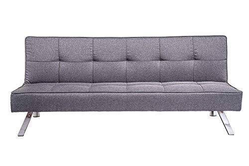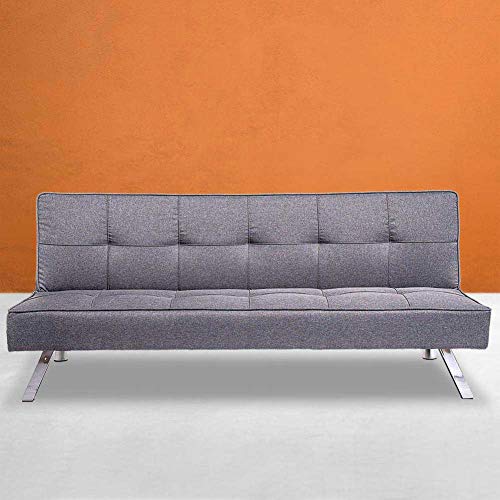 Gardenia Divano Letto 3 Posti Clic Clac Schienale Reclinabile, Legno, Tessuto, Acciaio, Grigio