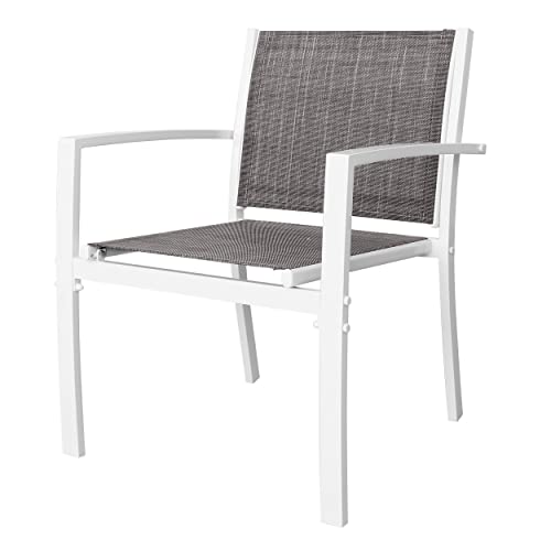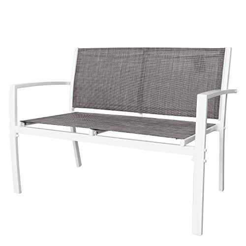 GARDENIA Set Mobile da Giardino 4 Pezzi Salotto da Esterno con Panchina 2 Posti 2 Poltrone e Tavolino in Acciaio E Textilene, Bianco e Marrone