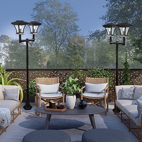 Palo della lampada solare a doppia testa: questa lampada da giardino a doppia testa alta 1,7 m è ideale per illuminare passerelle, vialetti e sentieri del giardino e porta una decorazione unica e drammatica a qualsiasi spazio esterno.