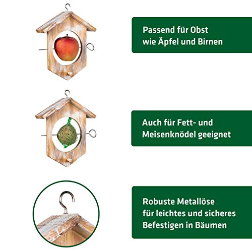 Gardigo Set di 3 Stazioni per Uccelli in Legno | Supporto per Mela o Palline di Mangime | Mangiatoia per Uccelli Selvatici