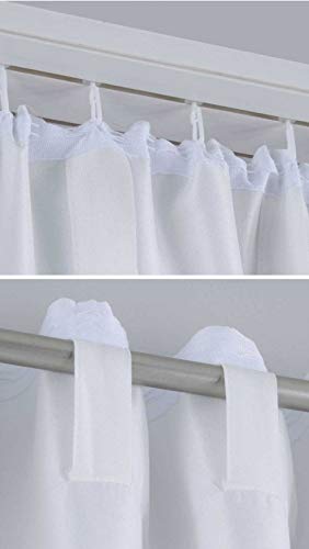 La tenda viene appesa con passanti nascosti alle aste per tende. In alternativa, la tenda può anche essere fissata alle tende con il nastro universale cucito e i passanti.