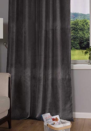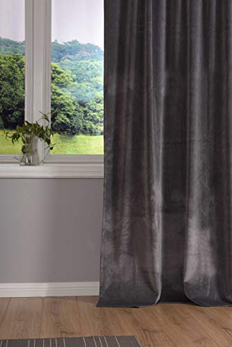 Gardinenbox Milano 20357 - Tenda oscurante in velluto, con passanti e passante per tunnel, accorciabile, grigio, 1 pezzo (altezza x larghezza), 235 x 135 cm, 20357