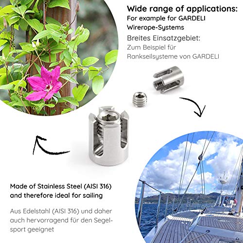 Gardini, 5 pezzi in acciaio inox (A4) per fune da 3 mm, morsetto M8 V4A 316