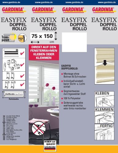 Contenuto: 1 x GARDINIA Easyfix Doppia tenda a rullo con morsetto di fissaggio o adesiva, Kit di montaggio incluso, Mocca, 100% Poliestere, 75 x 150 cm, Larghezza del tessuto: 70 cm, Larghezza del rullo: 75 cm