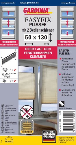 Contenuto: 1 x GARDINIA EASYFIX Tenda plissettata con morsetto di fissaggio, Kit montaggio incluso, Bianco, 100% Poliestere, 4 x Morsetti Premium, 50 x 130 cm