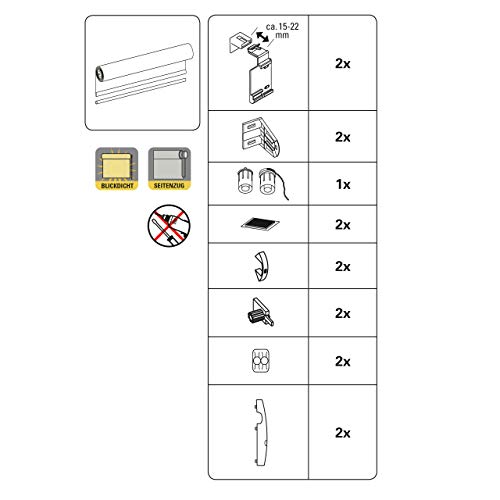 Fissaggio tramite morsetti: Facile da montare, Fissare l'oscurante alla parte superiore della finestra con i due morsetti, Adatto per finestre con ante di spessore compreso fra 15 e 22 mm