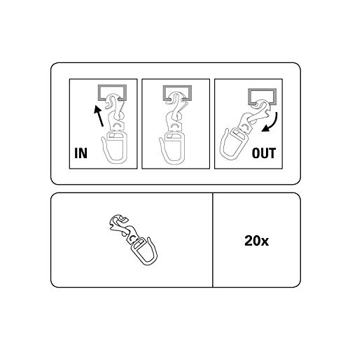 GARDINIA Gancio pieghevole Click in+out, Per binari e bastoni per tende con canale di scorrimento 6 mm, 20 pezzi, Plastica, Bianco