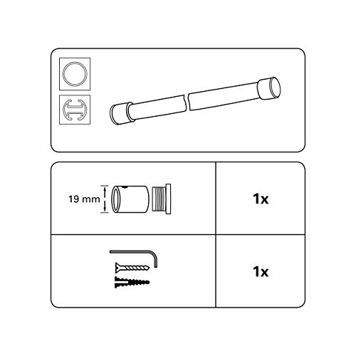 Contiene: 1x GARDINIA Base supporto da parete per bastoni per tende con Ø 19 mm, Incluso materiale di montaggio, Linea Kira, Metallo, Argento