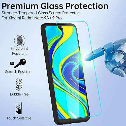 Garegce Cover Custodia Case per Xiaomi Redmi Note 9s e Redmi Note 9 Pro, 2 Confezione di Vetro Temperato, Sottile Silicone TPU Morbido Opaco, Antiurto-6,67 Pollici-Nero
