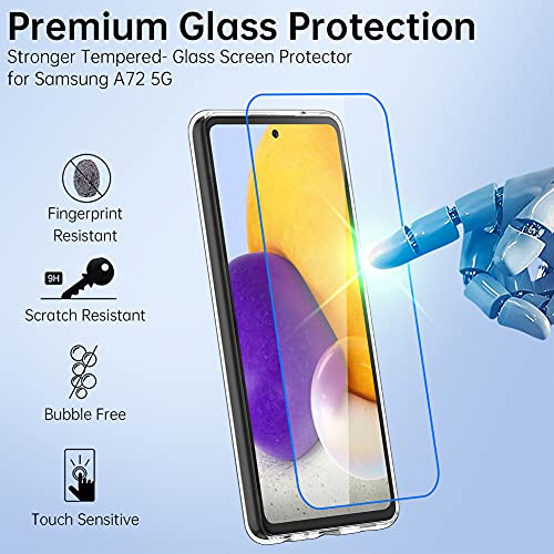 Eccellente protezione: la custodia Galaxy A72 5 g fornisce una protezione eccellente per il vostro prezioso dispositivo mobile, l'articolo contiene 1 pezzo una durezza di 9H protettore schermo in vetro temperato, che offre una protezione comprensiva e fronte retro. La protezione dello schermo e i bordi rialzati proteggono lo schermo e la fotocamera dai graffi.