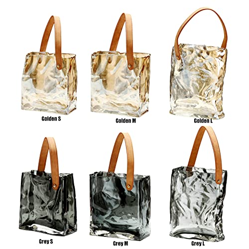 Garhelper Vaso in vetro per fiori, vaso in vetro a forma di tracolla in pelle, vaso creativo a forma di borsa per fiori per casa, ufficio, giardino, decorazione da tavola (dorato, S)