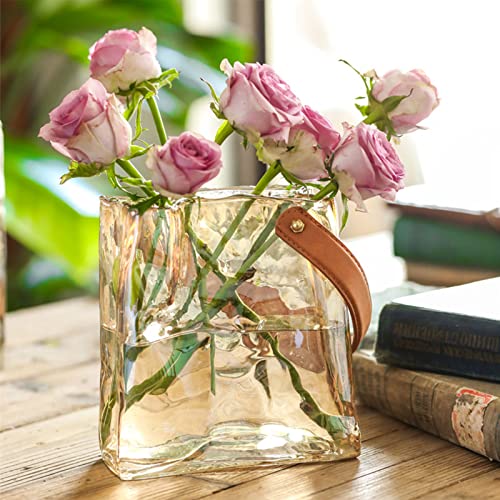 Materiale di alta qualità: il vaso stile borsa è realizzato in vetro ispessito di alta qualità, con forte trasparenza, atossico e insapore, tocco liscio, resistente e può essere utilizzato a lungo.