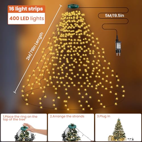 GARITE Luci Albero di Natale Bianco Caldo, 16x2M 400LED Mantello 8 Modalità Interno 150cm, 180cm, 210cm, 240cm Lucine Albero Natale