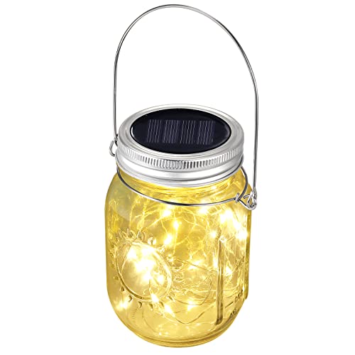 GARLLEN Luci Solari per Lanterne, 4 pezzi Lampade Solari Barattolo di Vetro a 30 LED Impermeabile Sospese per Coperchio del Barattolo di Vetro