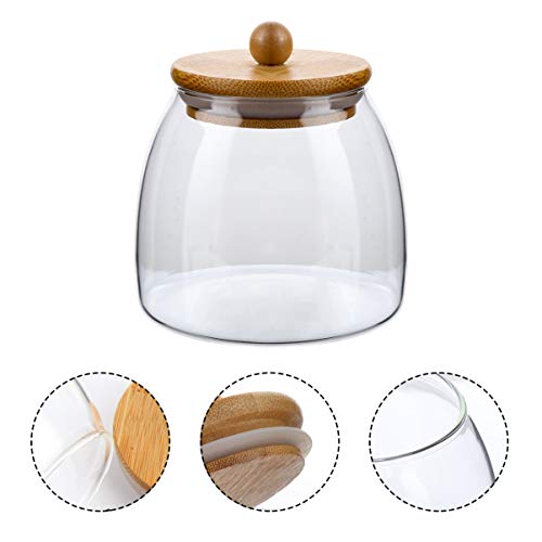 Garneck Barattolo per Alimenti in Vetro Trasparente con Coperchio in Legno Contenitore per Alimenti A Chiusura Ermetica Barattolo per Conservazione in Grani per Fagioli Tè-700Ml