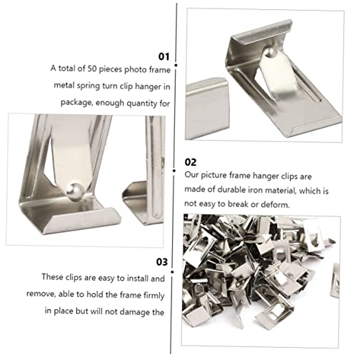 Garneck 50 Pcs Photo Frame Hardware Hook Picture Hanging Tool Nail Accessories Metal S Hooks Frame Glass Bed Clips Picture Hanging Nails Frame Spring Turn Clip Photo Frame Hanger Hardware