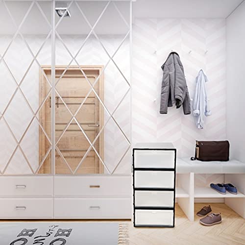 MATERIALE - I cassetti portaoggetti trasparenti impilabili sono realizzati in plastica ABS di alta qualità, resistente e durevole, impermeabile e antipolvere. Se si devono impilare in un mobile a quattro livelli, si consiglia di posizionarli contro la parete e di mettere qualcosa di pesante sul fondo, in modo che sia meno probabile che cadano.