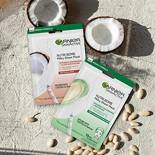 Garnier Nutri Bomb - Maschera per viso lattiginoso con latte di mandorla e acido ialuronico, per pelli rigenerate e rigenerate, 28 g