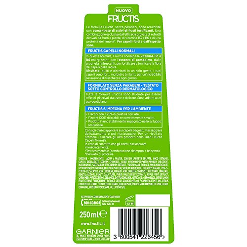 Garnier Shampoo Fructis Capelli Normali 2in1, Concentrato Attivo di Frutti, Capelli Forti e Brillanti, 250 ml