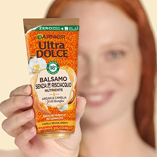 GARNIER Ultra Dolce Balsamo Senza Risciacquo Oli Meravigliosi, Nutriente e Illuminante per Capelli Secchi e Spenti, Olio di Argan e Camelia, 200 ml, Confezione da 1