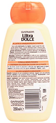 Garnier Ultra Dolce al Latte di Vaniglia e Polpa di Papaya Shampoo 2in1 per Capelli Lunghi, 250 ml