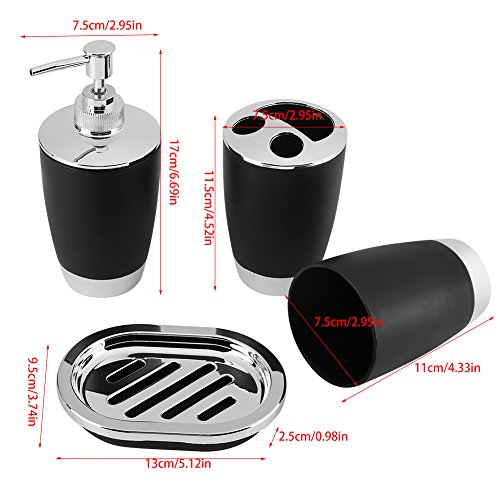 Garosa 4 Pezzi/Set di Accessori per Il Bagno Include Tazza portaspazzolino portasapone Dispenser Bottiglia lozione alla Moda Design Elegante Accessori per Il Bagno Kit(Black)