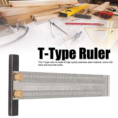 Garosa Righello a T, Righello per Scala di precisione Quadrata a T Righello per Fori di Tipo T Righello per Incisione in Acciaio Calibro per Falegname Strumento di misurazione per Falegname 300 mm