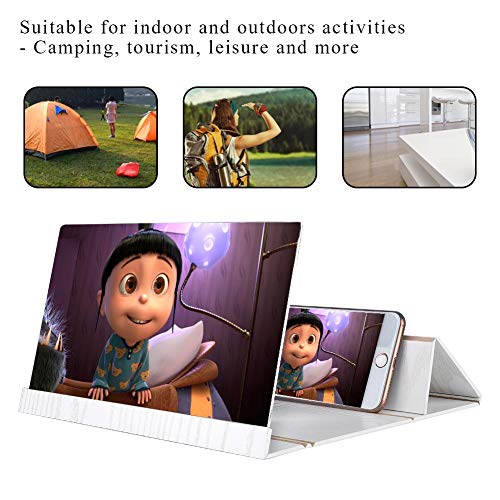 Garsent 12" Amplificatore Portatile per Schermo, HD Amplificatore per Schermo Universale,con Display per Protezione Occhi e Supporto in Legno per Telefono Cellulare. (Bianco)