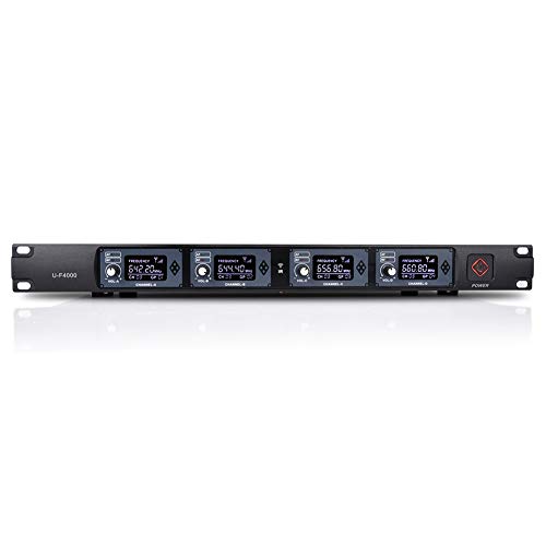 Garsent 4 Canali UHF Sistema di Microfono Professionale Lavalier Microphone System, UHF Wireless Lavalier Microphone Clip-on 4 Microfoni 1 Ricevitore wireless (642.2-660.8Mhz)